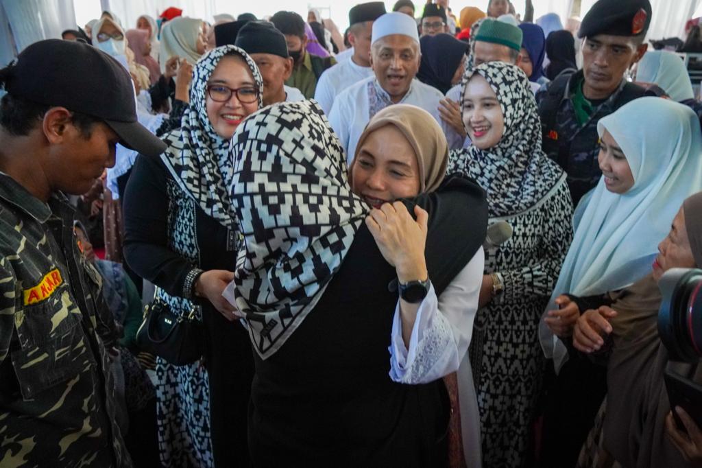 “Alhamudlillah, saya bisa sowan dan bersilaturami bersama bu nyai bersama pak kiai di depan ibu-ibu semua. Matur suwun tadi sudah didoakan untuk Mas Ganjar dan Pak Mahfud dan tentu saja untuk keselamatan bangsa Indonesia,” ujar Siti Atikoh dalam sambutannya.