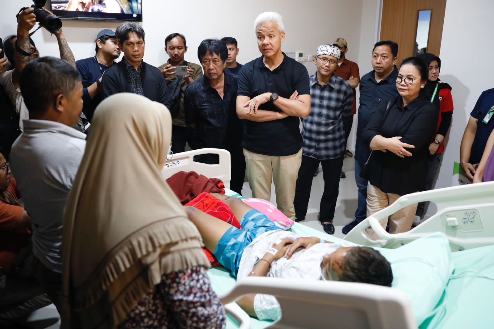 “Saya datang ke sini sebagai bentuk pertanggungjawaban karena dia pendukung saya. Dari tujuh anak yang mengalami, ada dua yang masih dirawat. Satu (korban) saya tidak sempat ngomong karena masih tidur, karena situasinya masih bengkak-bengkak, yang satu sudah bisa diajak bicara,” kata Ganjar usai menjenguk korban.