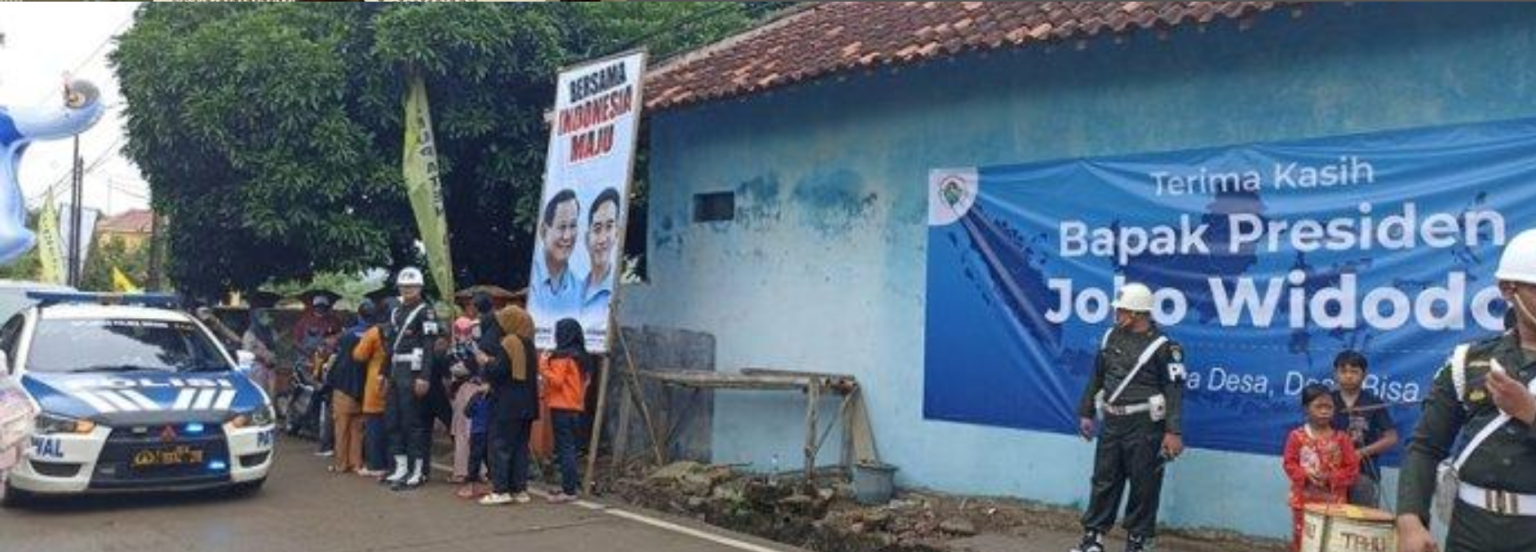 Alih-alih diturunkan, justru baliho dan spanduk yang bergambar wajah Prabowo Subianto – Gibran Rakabuming Raka dibiarkan dan “terkesan” ikut mendompleng kegiatan RI-1. Spanduk itu tampak mencolok saat Joko Widodo melempar bingkisan kepada warga.