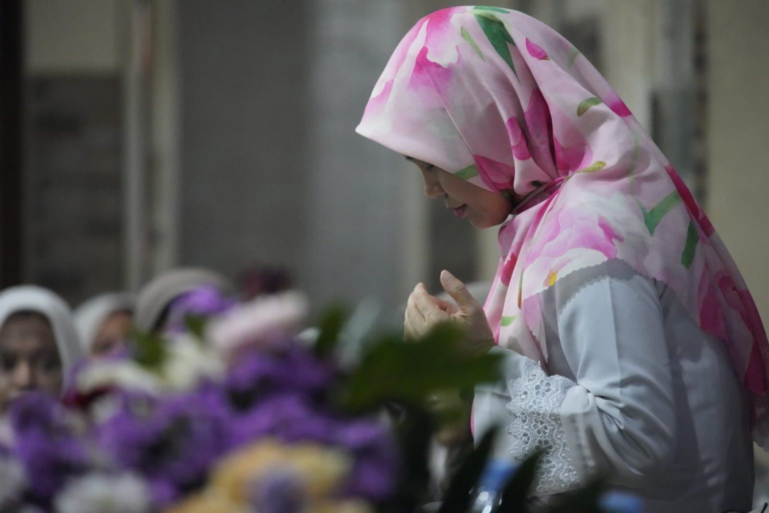Atikoh pun mengajak ibu-ibu Muslimat NU serta santriwati untuk bersholawat bersama. Sholawat pun berlangsung dengan khusyuk dan penuh harapan.