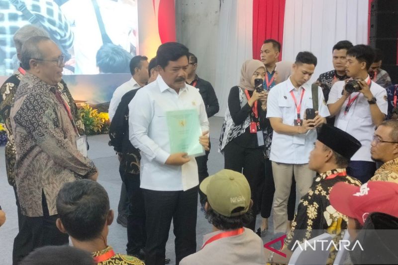 “Bapak-ibu sudah memiliki sertifikat tanah, bukti hak atas tanah, artinya bahwa tanah-tanah yang bapak-ibu miliki sudah dilindungi oleh hukum,” ujar Hadi dalam acara penyerahan sertifikat tanah untuk rakyat di GOR Si Jalak Harupat, Kabupaten Bandung, Jawa Barat, Sabtu.