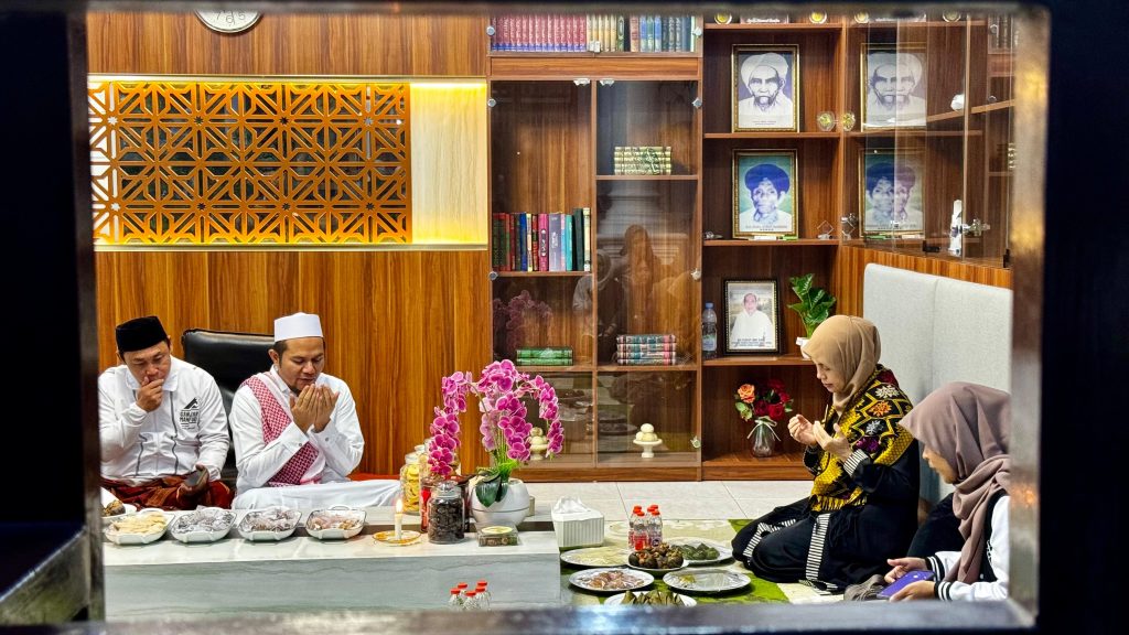 Karena bertepatan dengan azan Magrib, Atikoh bersama K.H Ahmad Rofiudin serta istri pun bersama-sama melaksanakan ibadah salat Magrib.