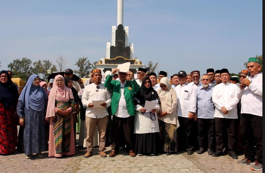 Banda Aceh – Suara keras kepada pemerintah dalam menjaga demokrasi jelang Pemilu 2024 terus bergulir. Kali ini dari provinsi paling barat Indonesia. Puluhan guru besar dan kalangan sivitas akademika Universitas Syiah Kuala (Unsyiah) Aceh, mendeklarasikan pernyataan sikap terkait kondisi politik menjelang Pemilu 2024, di Lapangan Tugu Darussalam, Banda Aceh, Jumat (9/2/2024).