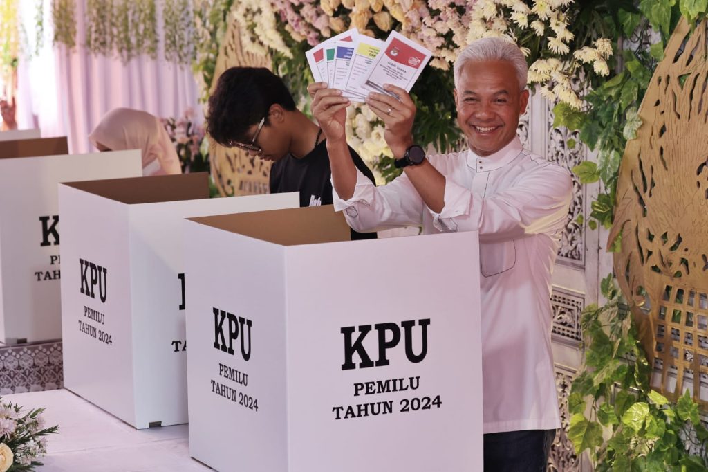 Ganjar mengatakan hal itu setelah mencoblos bersama istrinya Siti Atikoh Supriyanti dan putra mereka Alam Ganjar, di Tempat Pemungutan Suara (TPS) 11 Lempongsari, Gajahmungkur, Semarang, Jawa Tengah, Rabu (14/2/2024).