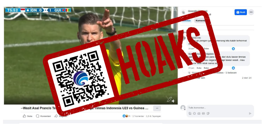 Jakarta – Beredar sebuah unggahan video di media sosial Facebook yang mengklaim pertandingan laga play-off Olimpiade Paris 2024 antara tim nasional Indonesia melawan Guinea akan diulang. Hal itu disebabkan karena wasit asal Perancis, Francois Letexier, terbukti curang.