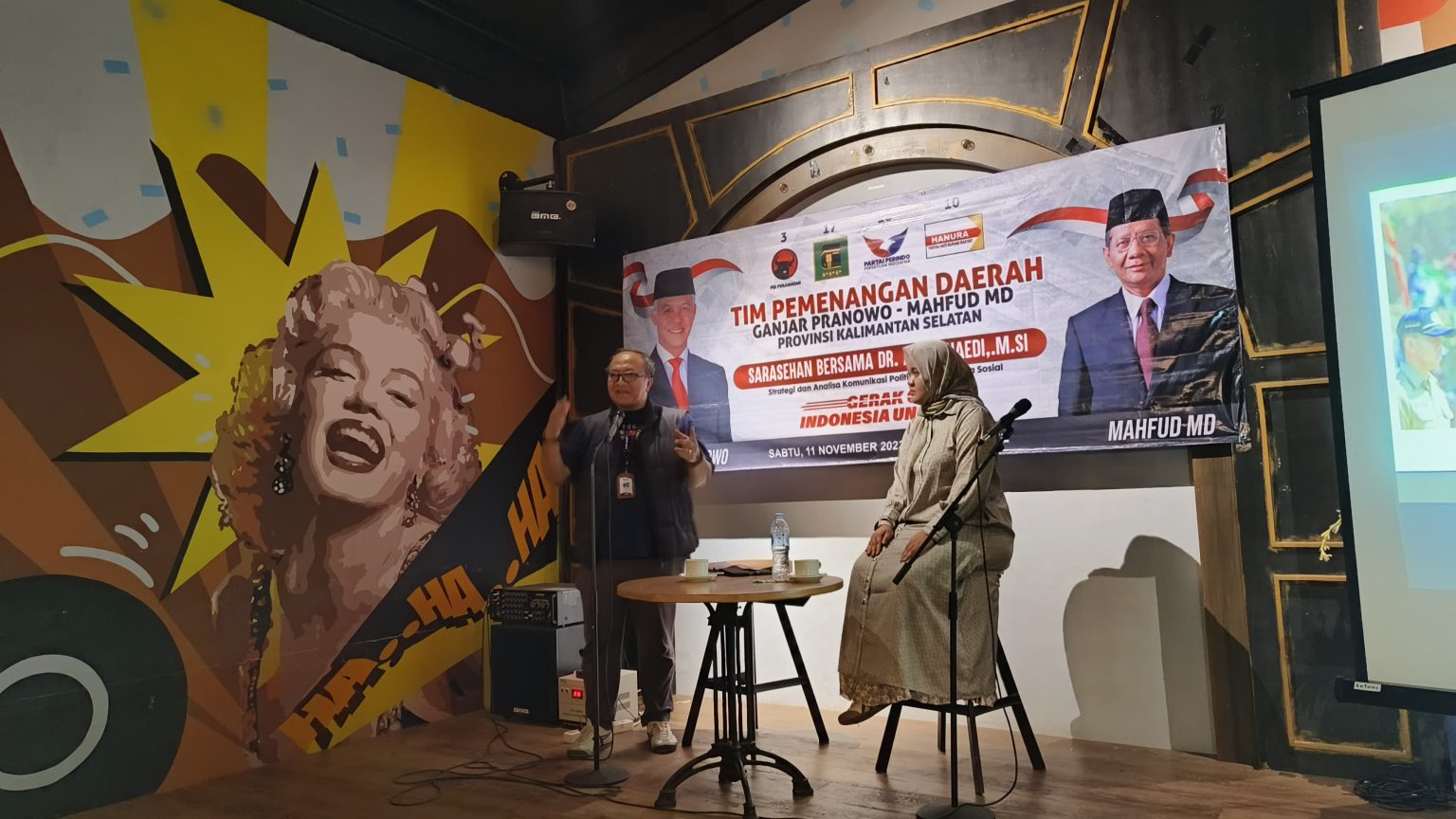 Banjarmasin – Tim Pemenangan Daerah (TPD) capres dan cawapres Ganjar Pranowo – Mahfud MD Kalimantan Selatan (Kalsel) menggelar sarasehan dengan menghadirkan pakar komunikasi politik Ari Junaedi.