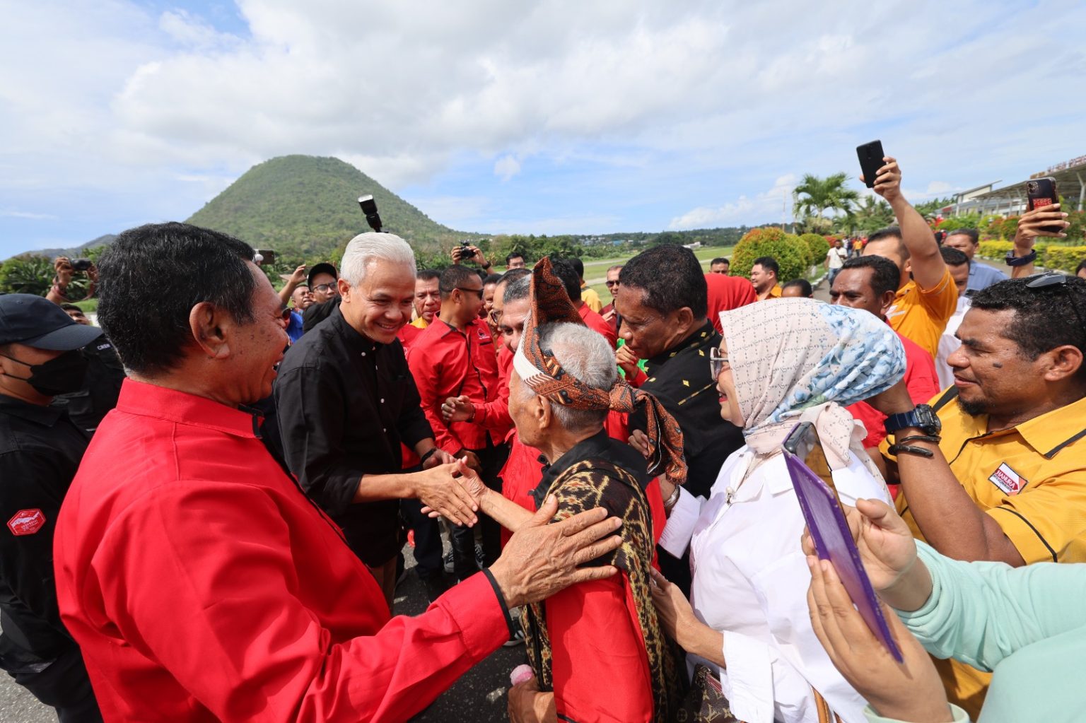 “Selamat datang di Ende Pak Ganjar, Kota Pancasila. Senang sekali kami dikunjungi Pak Ganjar. Bapak pemimpin yang sudah lama kami nantikan hadir di sini,” teriak warga sambil berebut untuk menyalaminya.