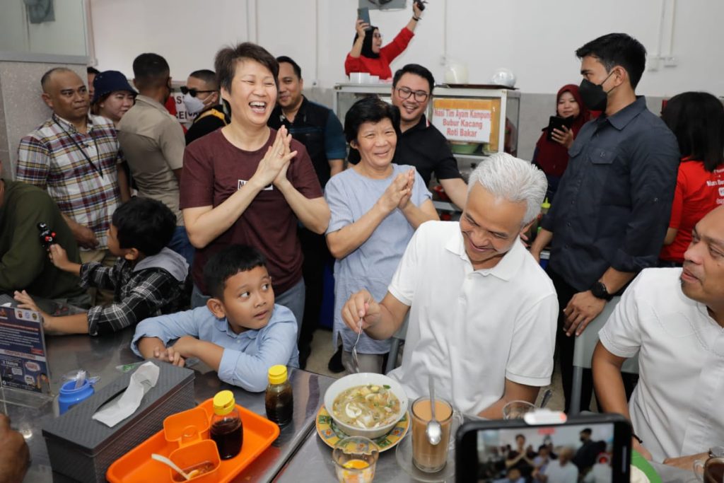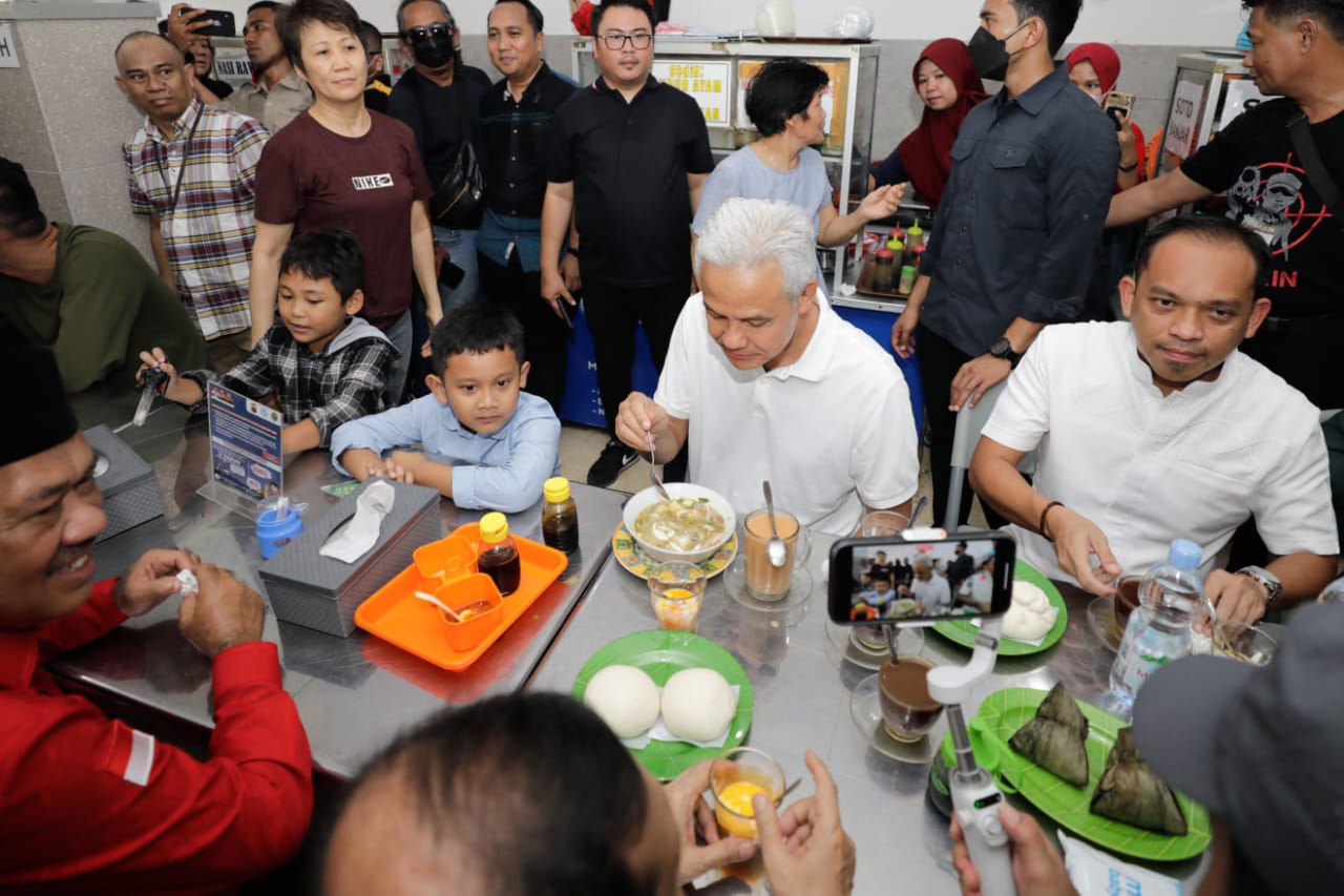 Balikpapan – Setelah blusukan ke Pasar Baru Balikpapan, Kalimantan Timur, Calon Presiden Ganjar Pranowo menyempatkan diri untuk sarapan pagi di Kedai Depot Miki, Selasa (5/12/2023).